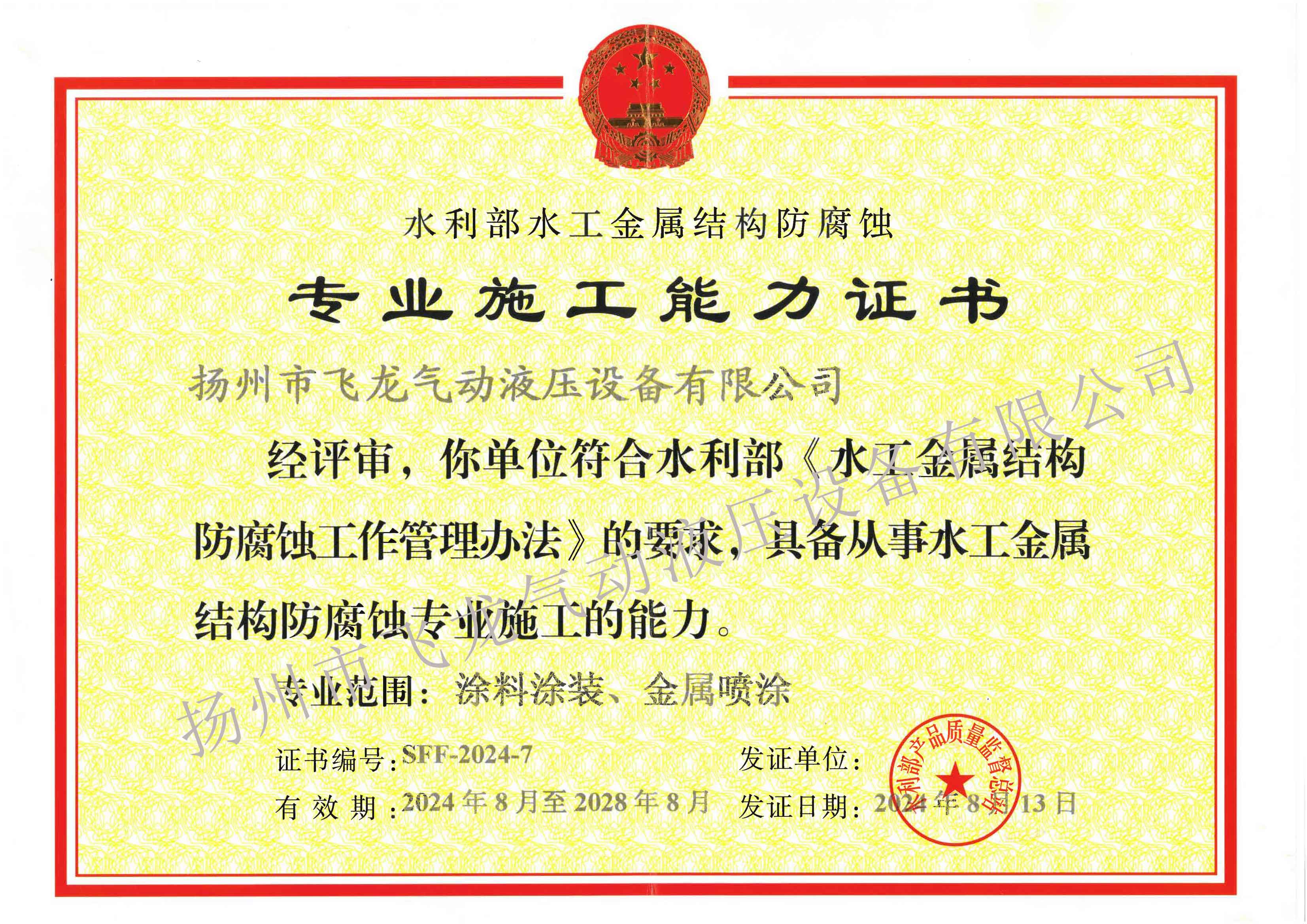 水工金屬結構防腐蝕專業(yè)施工能力證書