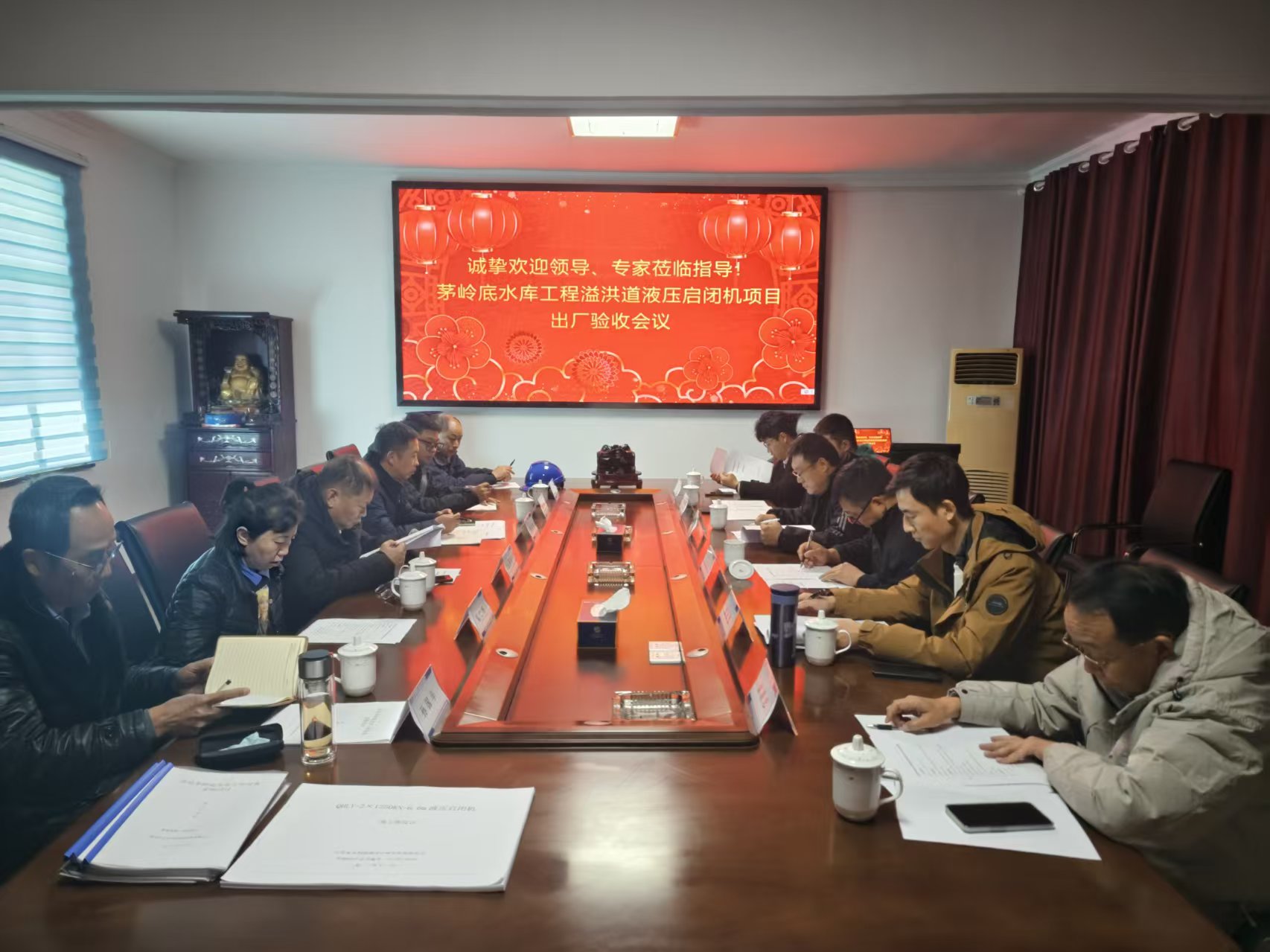 涉縣茅嶺底水庫工程設(shè)備采購項(xiàng)目溢洪道露頂弧形閘門液壓?jiǎn)㈤]機(jī)QHLY-2×1250kN-6.6m(3臺(tái)套)順利通過出廠驗(yàn)收!